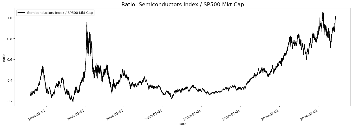 Nvidia just made new ATHs; the whole AI future funding is being sold on promises, not money, as the companies making the promises don’t have the money. I was playing around with the semiconductor index, and this ratio stood out as significant. I thought the previous ratio high and subsequent sell-off was the “one”. I still think it was the one. Look out for air pockets; there are plenty about.