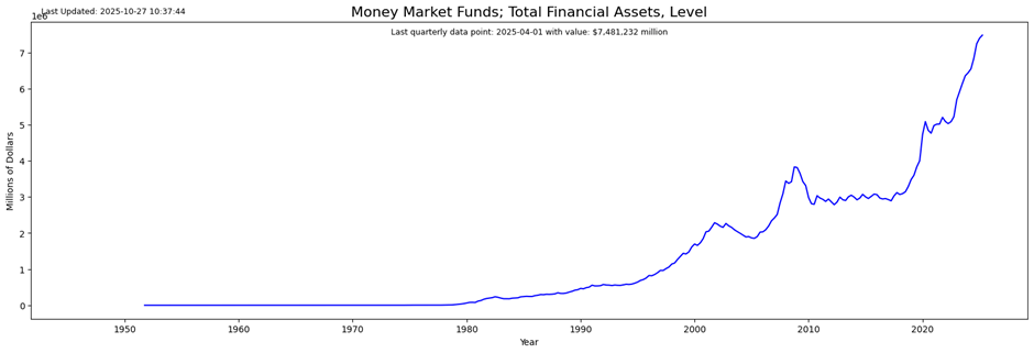Financial commentators are currently pushing the narrative about “money on the sidelines”; they present an image of a giant pile of cash waiting to rush into markets. It’s a comforting thought — and a misleading one. The truth lies in understanding how modern monetary plumbing works and why the idea of sidelined money is more about psychology than balance sheets.