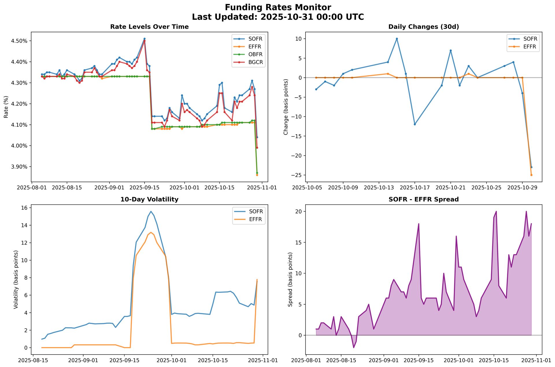 One of the most critical metrics to keep an eye on is the spread = SOFR − EFFR, as it shows how the secured market trades relative to the unsecured one. There is a lot to unpack in this statement. Many of you might be unfamiliar with these monetary facilities, so let us revisit them soon. For now let us simply acknowledge there could be something to be concerned about. And yes, the intention was to drive the rates down as you can see below.