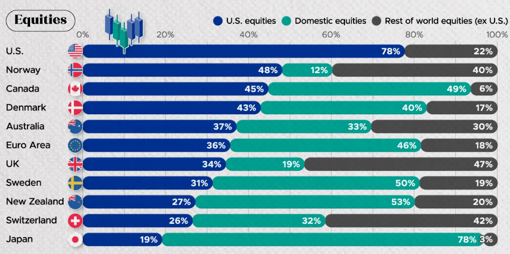 My favourite data visualisers are the Visual Capitalists. I found it interesting that Japan invests in their local market as much as the US does in their own market - 78%.