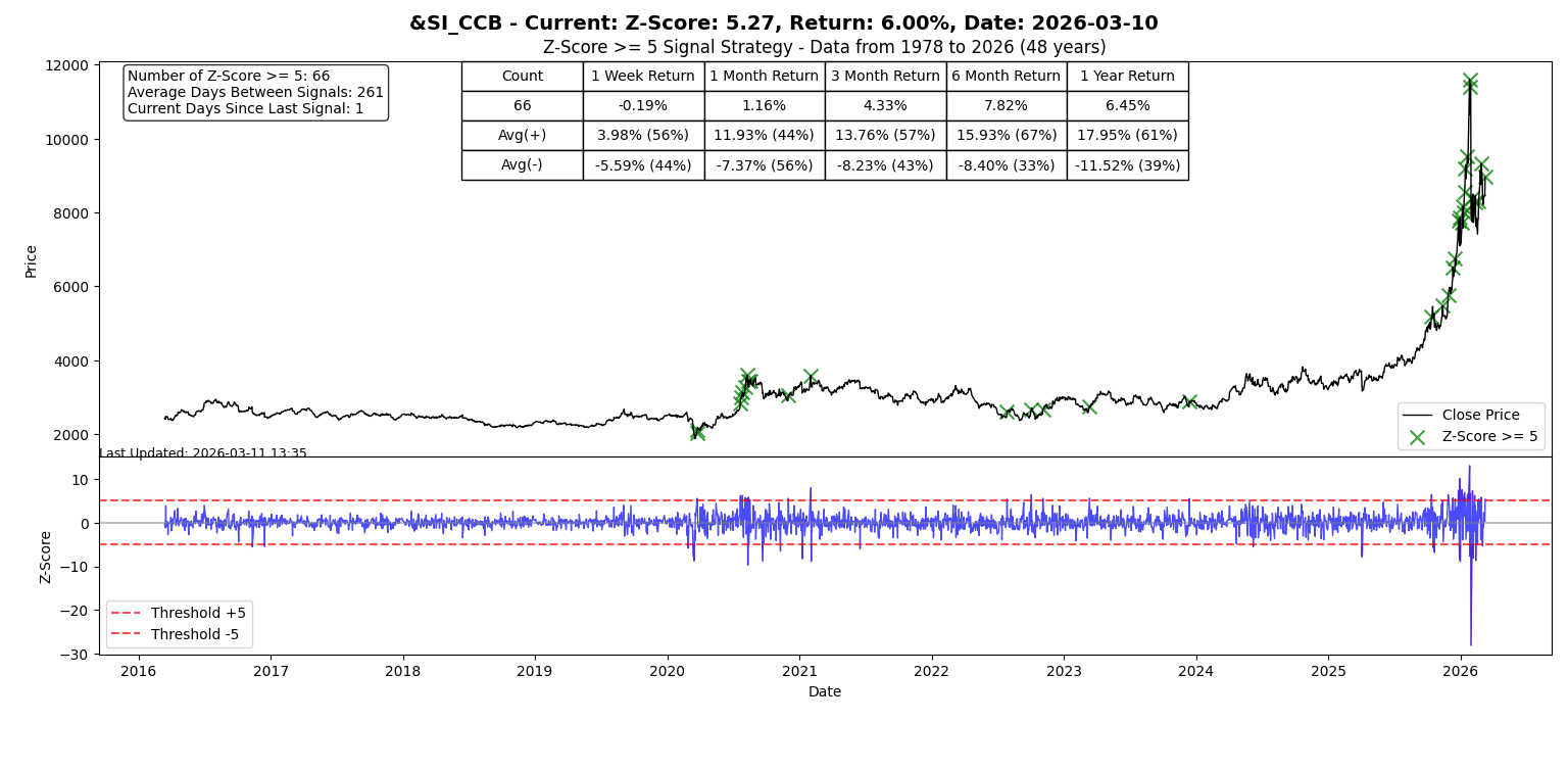 Silver didn’t even get a mention in the financial press, but it produced the highest Z-score (+5) in my database.